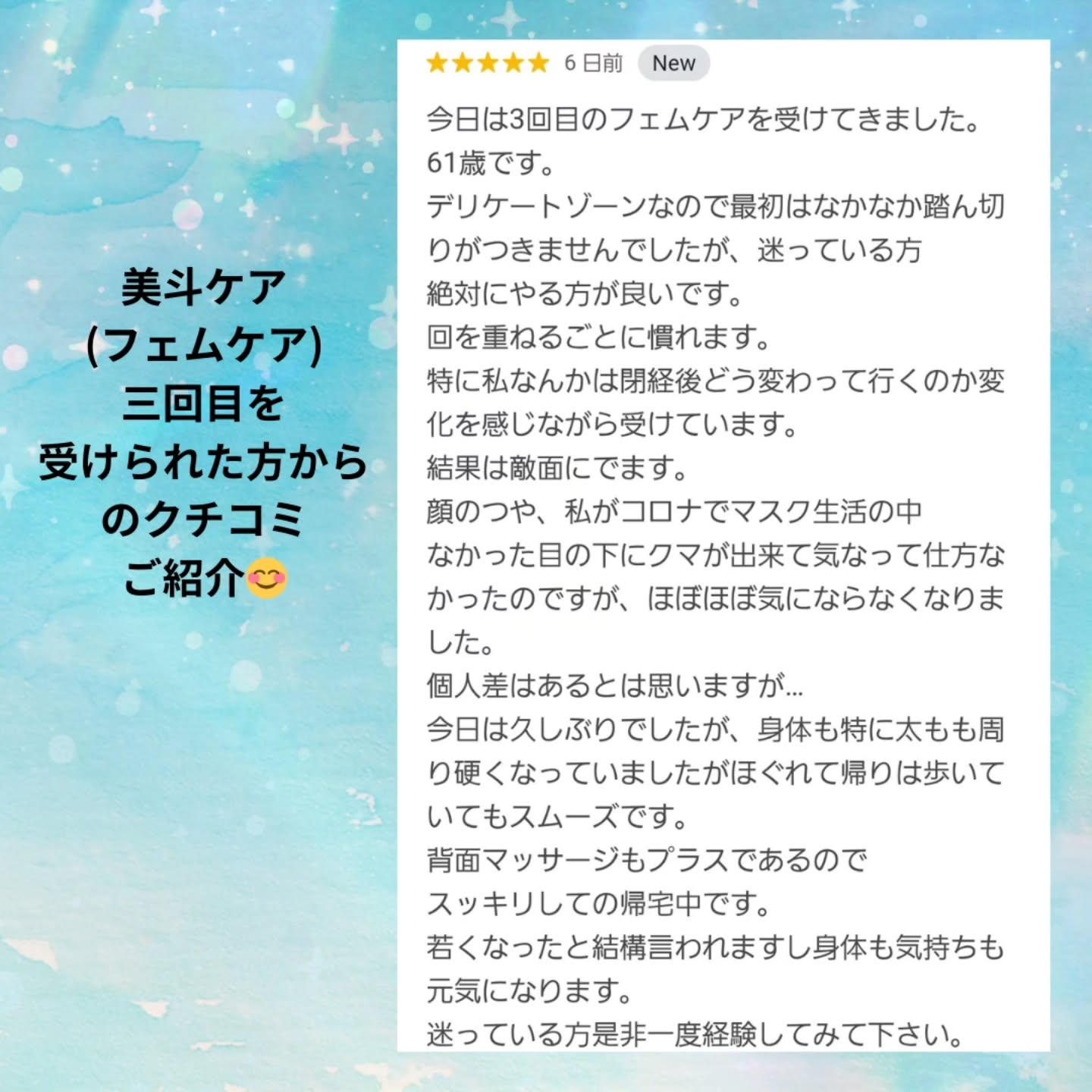 一回、身をゆだねて本格的な美斗ケア(フェムケア)を受けてみませんか💚